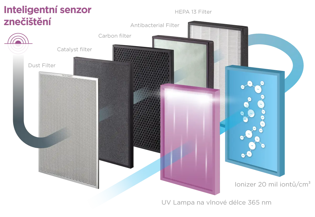 Katalytický filtr – rozkládá čpavek, benzen a další nebezpečné látky uvolňující se např. z nového nábytku a koberců.