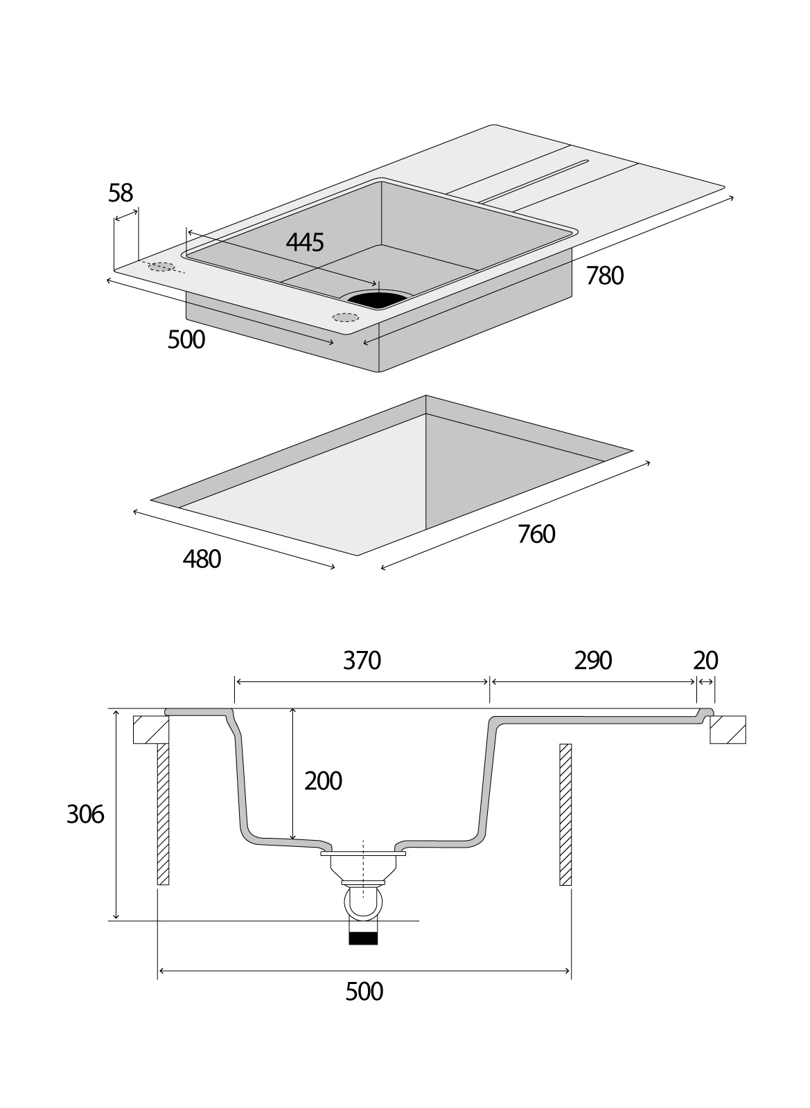 • Celkové rozměry (d x š x h): 500 x 780 x 306 mm