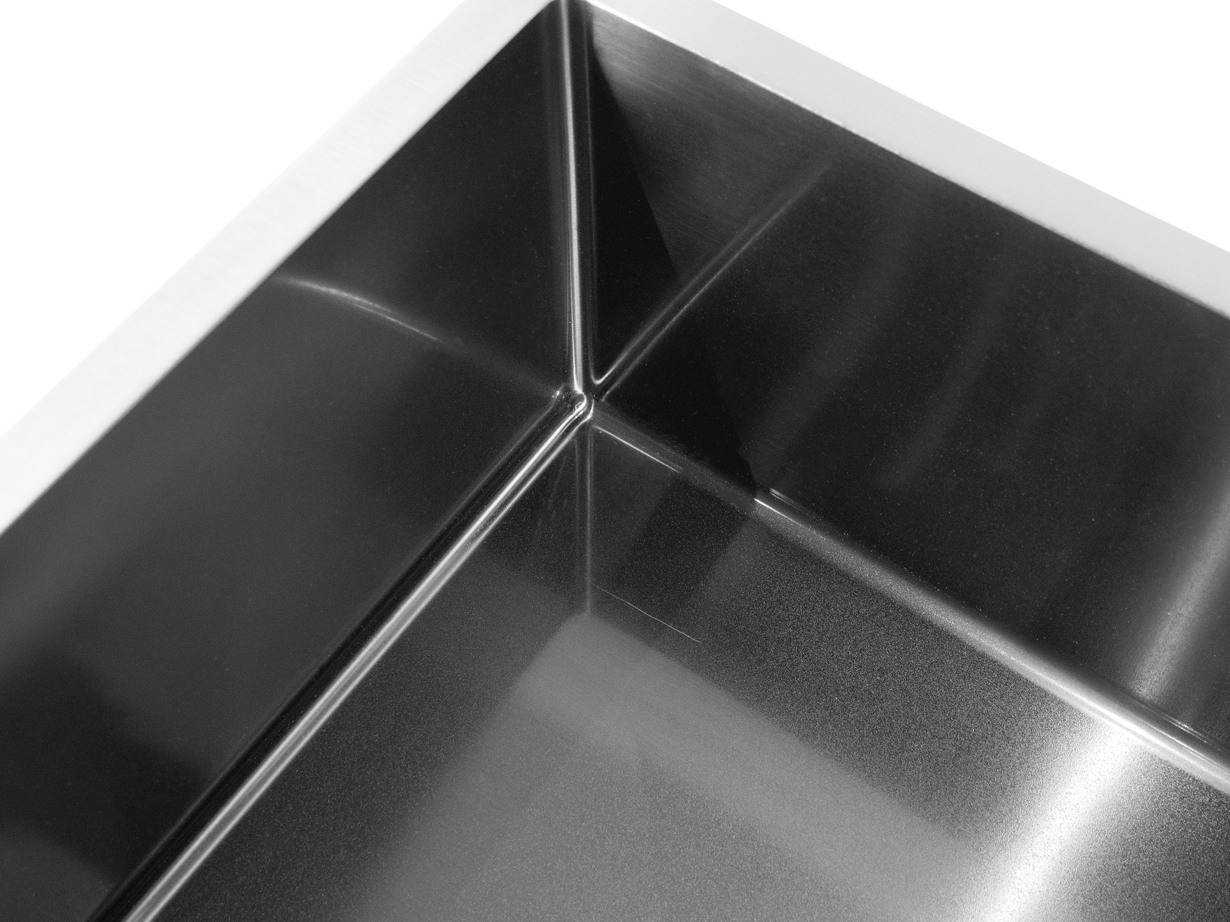 Díky kombinaci inovativních technologií je čištění a údržba dřezu velice snadná a rychlá. Dřez stačí opláchnout vodou, očistit měkkou houbičkou a následně vysušit hadříkem nebo utěrkou. Rohový rádius R10 zlepšuje hygienický standard dřezu, protože minimalizuje usazování nečistot v rozích, a tím snižuje riziko tvorby bakterií či plísní.