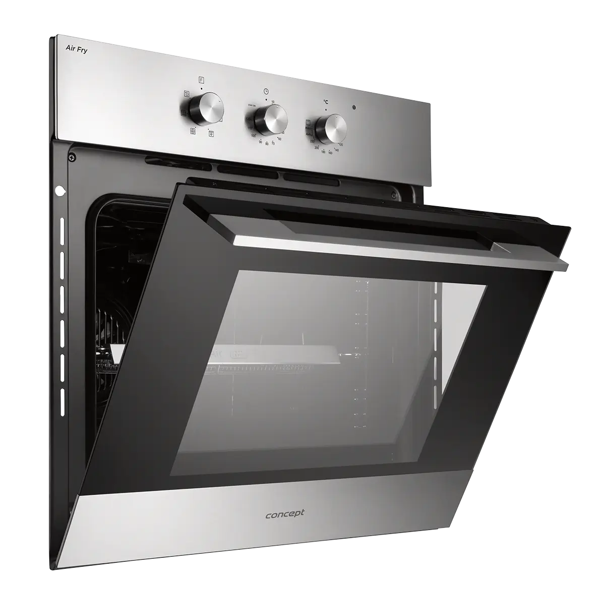 Vestavná trouba Air Fry Concept ETV5960 představuje ideální volbu pro každého, kdo řeší prostor v kuchyni. Zastane práci běžné trouby, horkovzdušné fritézy i grilu, takže šetří místem i penězi vynaloženými za nákup dalších produktů. Trouba je zařazena do energetické třídy A, čímž se řadí mezi úsporné spotřebiče.