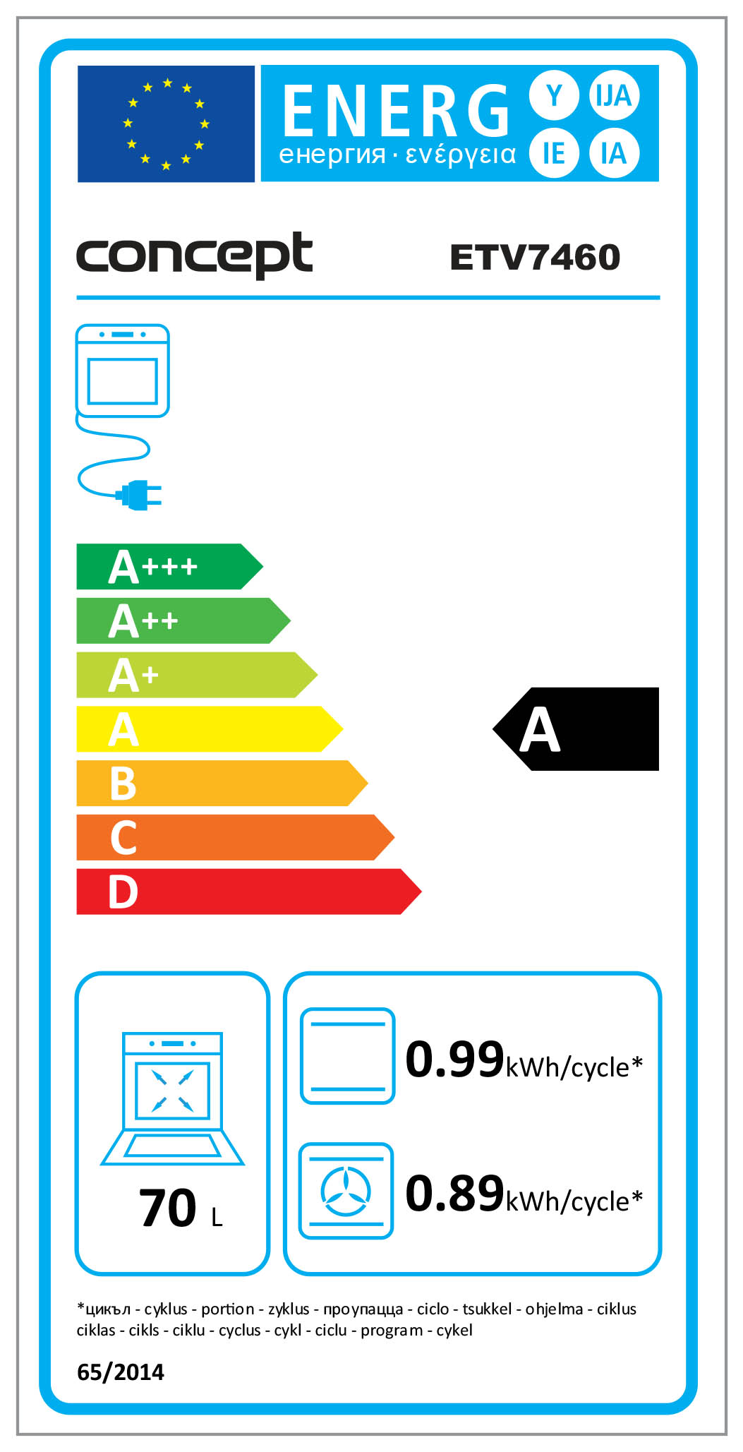 S elektrickou multifunkční troubou ETV7460 nakrmíte i velkou rodinu. Vnitřní objem 70 l Vám zajistí dostatek místa i pro přípravu prostorově náročnějších pokrmů. I přes tento extrémní objem Vás trouba překvapí svou energetickou třídou - A. Díky tomu spotřebuje trouba méně elektrické energie a její provoz je výrazně levnější, než u spotřebičů zařazených do jiných tříd, jednoduše ušetříte spoustu peněz.