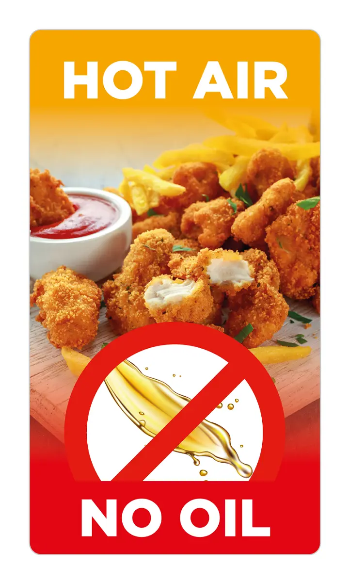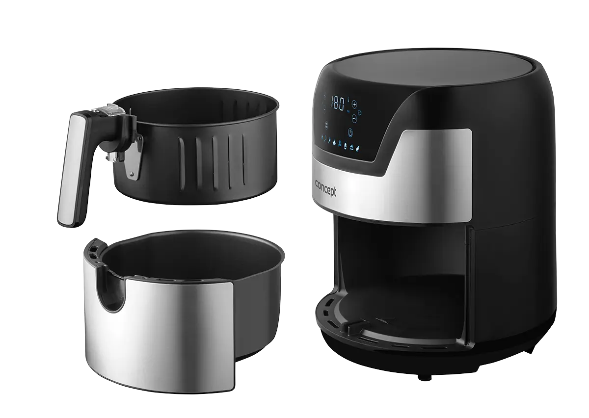 • Horkovzdušná technologie (úspornější než klasické smažení na pánvi)