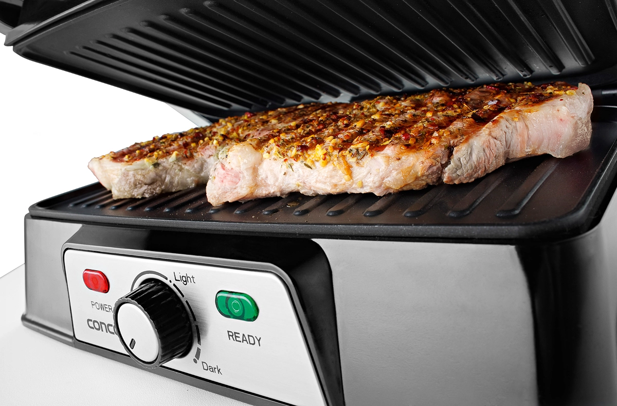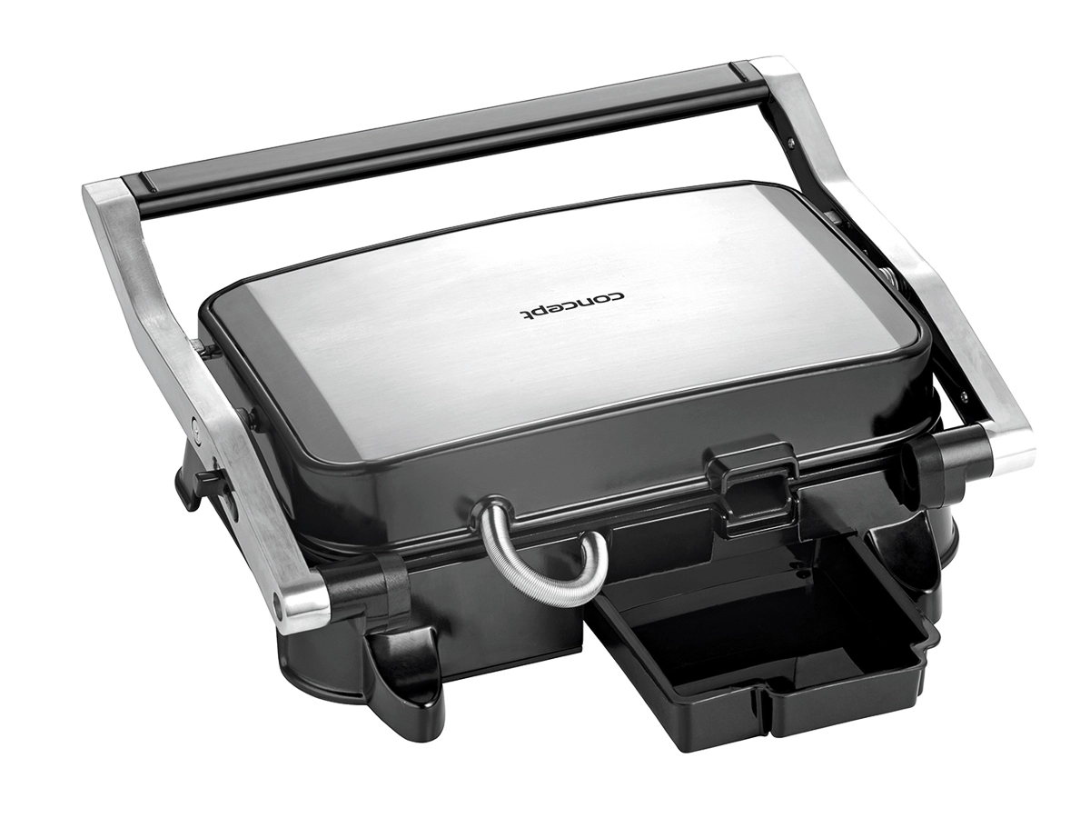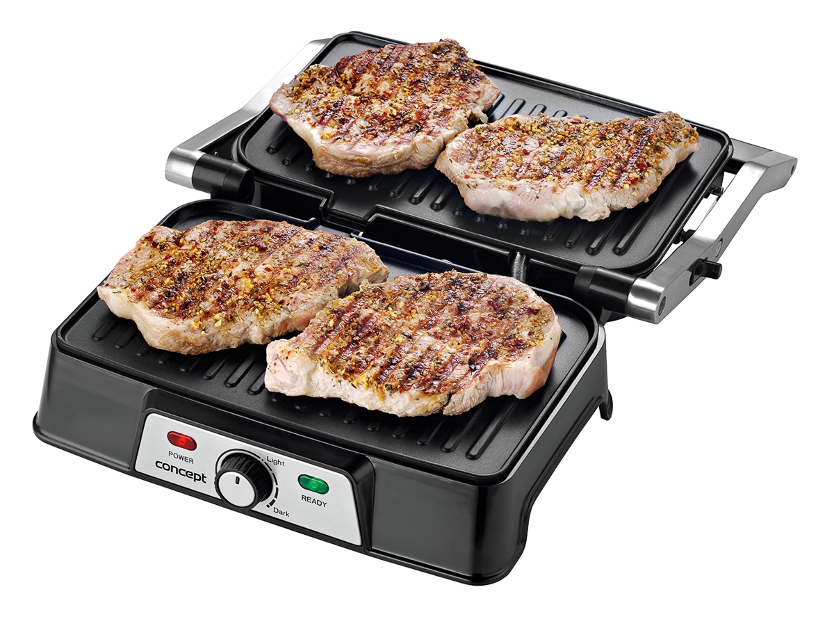 Chcete si dopřát šťavnaté steaky, křupavou zeleninu, panini, kdykoli si zamanete? Nemusíte čekat na ideální letní počasí. Na všechny tyto dobroty Vám bude stačit jeden jediný přístroj, a to elektrický kontaktní gril Concept, který vás uspokojí svou grilovací plochou o velikosti 1 218 cm².