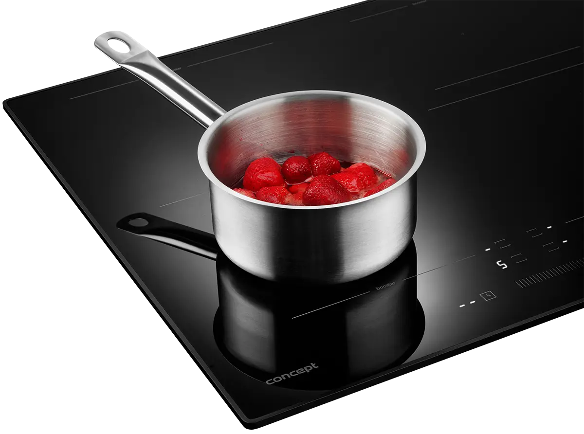 Indukční deska Concept IDV4560bf s novou technologií plynulého vaření vyniká moderním designem s minimalistickým potiskem. Je opatřena dotykovým displejem se sliderem a kovovým rámečkem, který ji přidává na odolnosti.