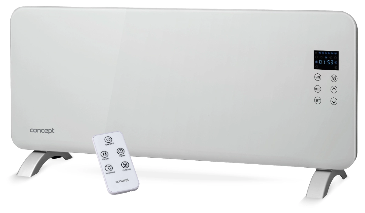 <b><p>Poškozený vnější obalový materiál. Výrobek je nový a nepoužívaný, ve 100% technickém a funkčním stavu s plnou zárukou 24 měsíců. Na tuto položku se nevztahují slevové akce a dárky.</p> </b> Konvektor Concept KS4000 je vhodný do místností o velikosti až 20 m2 a vyniká svým moderním skleněným designem a možností montáže na zeď. Je vybaven LCD displejem, dálkovým ovladačem, 2 stupni výkonu a časovačem.