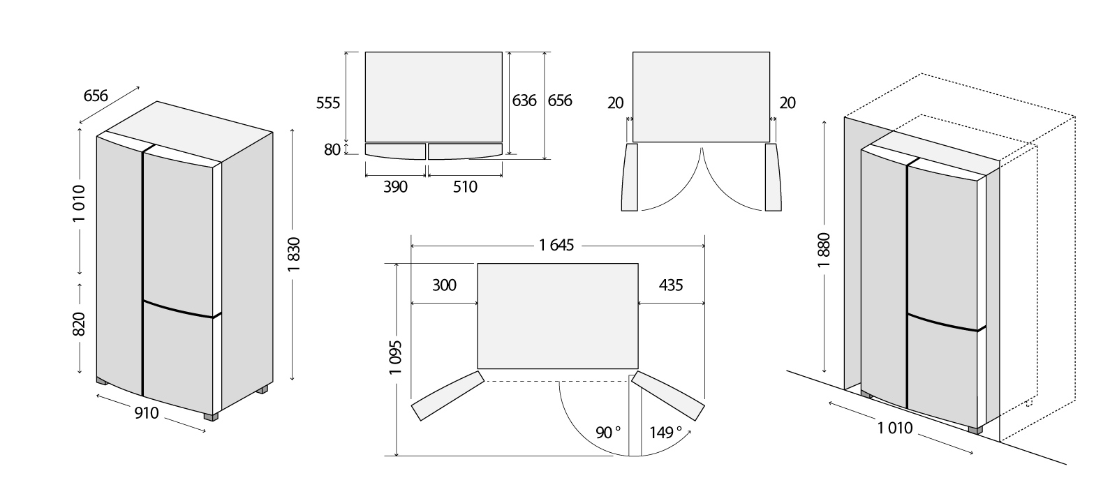 Lednice LA7791ds disponuje praktickým otevíráním dveří. Pro plnohodnotné vysunutí zásuvek stačí dveře lednice otevřít pouze do pravého úhlu. Lednici tedy můžete umístit i blízko zdi, ale vždy je nutné počítat s lehkým náběhem dveří min. 20 mm.