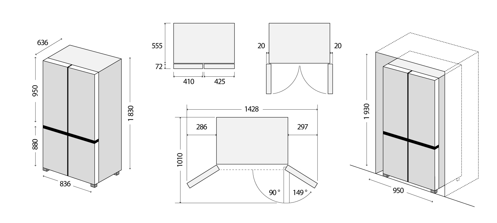 Lednice LA8383ss disponuje praktickým otevíráním dveří. Pro plnohodnotné vysunutí zásuvek stačí dveře lednice otevřít pouze do pravého úhlu. Lednici tedy můžete umístit i blízko zdi, ale vždy je nutné počítat s lehkým náběhem dveří min. 20 mm.