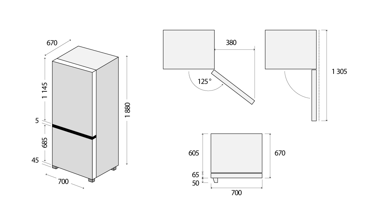 Mraznička disponuje XXXL boxem, do kterého můžete uschovat i objemné potraviny, jako například kuře nebo husu pro celou rodinu.Pro vysunutí zásuvek chladničky i mrazáku stačí otevřít dveře pouze do 90°. Díky tomu je vhodná do užších prostor nebo blízko zdi. Dveře chladničky nezasahují do prostoru a nenaruší tak celkový vzhled místnosti, ve které je lednice umístěna.