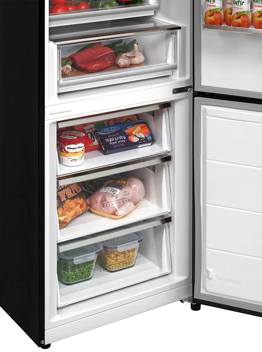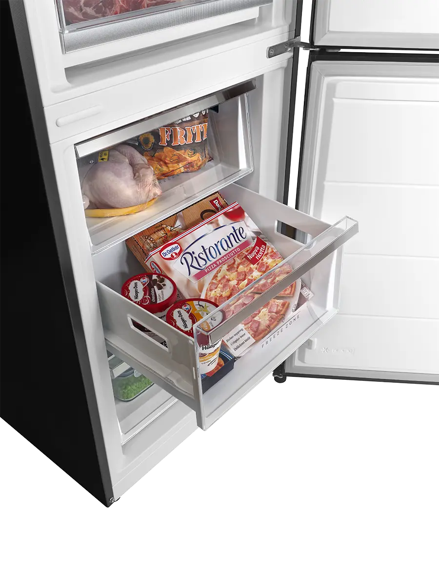 Stává se vám, že občas zapomenete zavřít dveře ledničky, čímž dochází k znehodnocení uložených potravin a zároveň k vyšší spotřebě elektrické energie? Díky alarmu nedovřených dveří můžete zůstat v klidu. V případě, že lednici necháte delší dobu otevřenou, spustí se zvukový signál, který se automaticky vypne vždy, když ledničku nebo šuplíky opět zavřete.