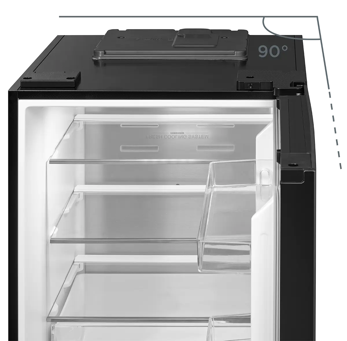 Lednici LK6460bc s chytře vymyšleným způsobem otevírání dveří umístíte i do úzkých prostor nebo blízko zdi. Pro vysunutí zásuvek chladničky i mrazáku stačí otevřít dveře pouze do 90°. Dveře chladničky nezasahují do prostoru a nenaruší tak celkový vzhled místnosti, ve které je lednice umístěna.
