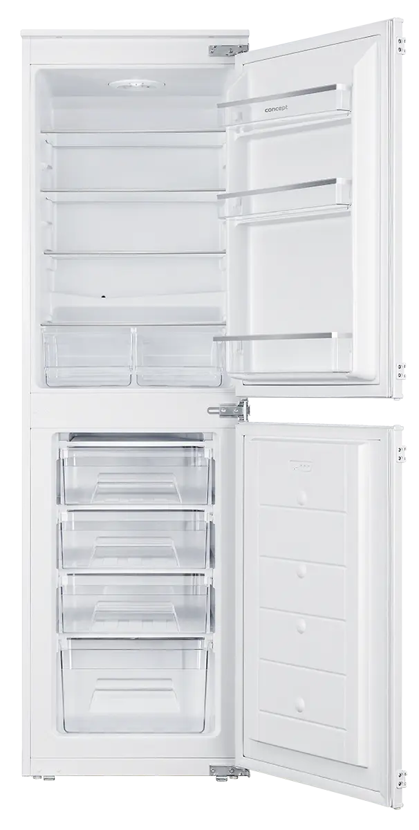 Vestavná lednice Concept LKV6260 je navržena pro snadnou instalaci do kuchyňské linky. Je kombinací chladničky a mrazáku v jednom spotřebiči, přičemž mrazák je umístěn ve spodní části. Nerezový dekor na policích a přihrádkách zvýrazňuje moderní vzhled a přispívá k elegantnímu designu lednice. S celkovým objemem 228 l je tento model ideální pro běžné potřeby rodiny. Ovládání je jednoduché díky elektronickému displeji, který je umístěn uvnitř spotřebiče.