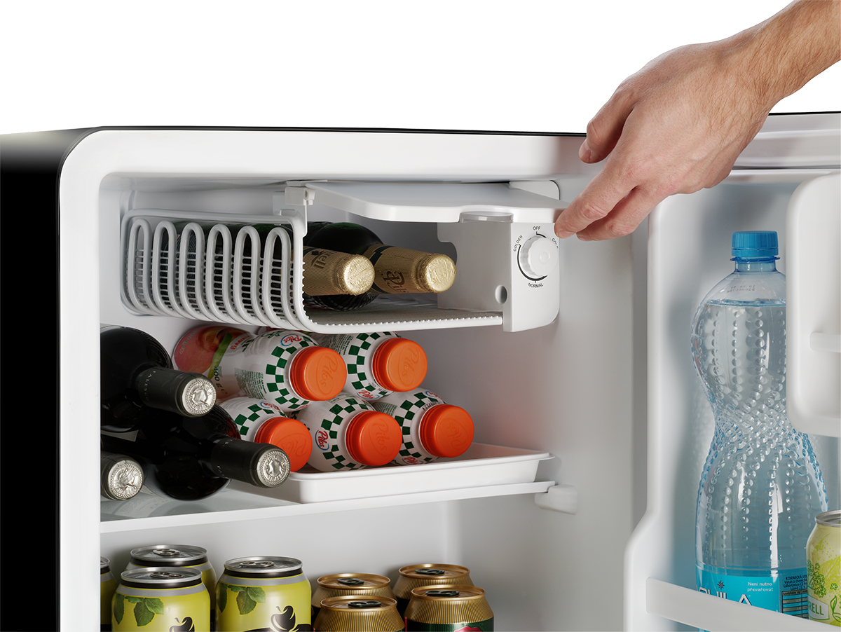 Pomocí otočného regulátoru ve vnitřním prostoru minibaru jednoduše navolíte úroveň chlazení. Nižší úroveň je vhodná pro krátkodobé chlazení. Pokud v minibaru budete potraviny a nápoje uchovávat delší dobu, doporučujeme úroveň chlazení navýšit.