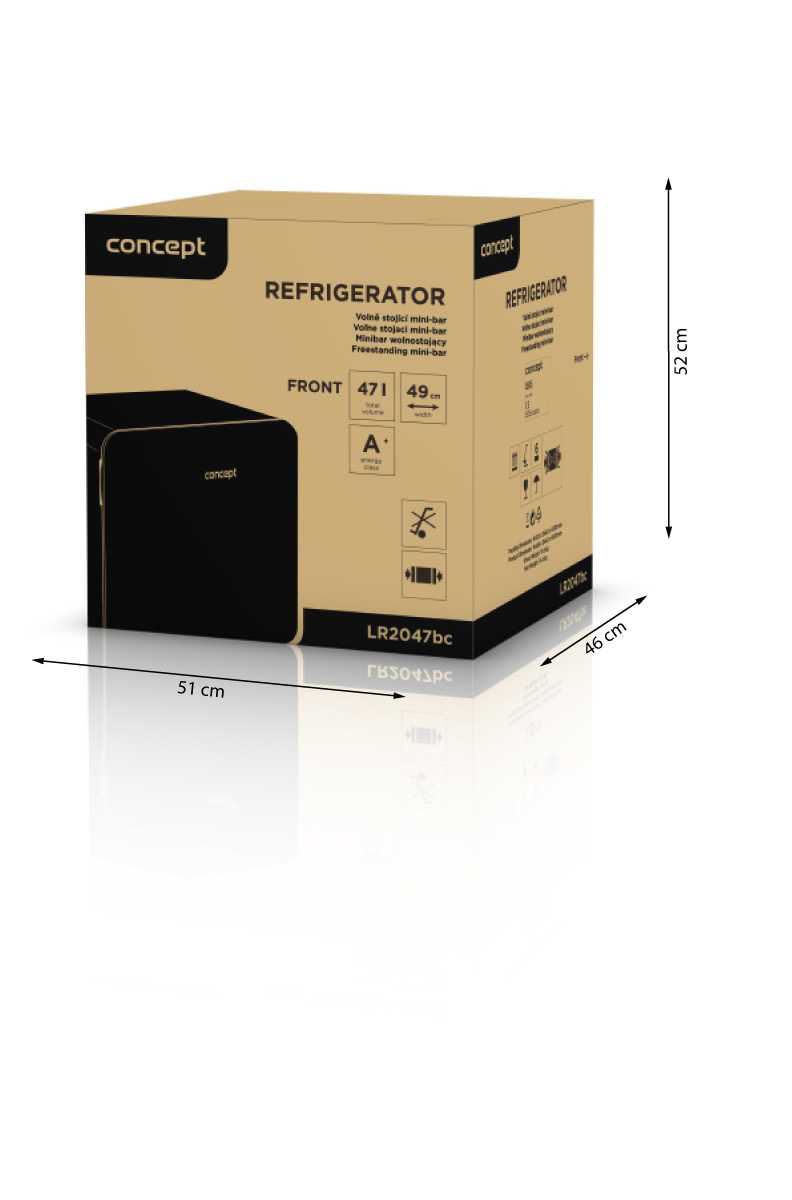 <b><p>Poškozený vnější obalový materiál. Výrobek je nový a nepoužívaný, ve 100% technickém a funkčním stavu, s plnou zárukou 24 měsíců. Na tuto položku se nevztahují slevové akce a dárky.</p> </b> Volně stojící minibar v retro stylu Concept LR2047bc je prostorově úsporná mini lednice, která nabízí objem 47 l a nízkoteplotní zónu pro rychlé zchlazení nápojů.