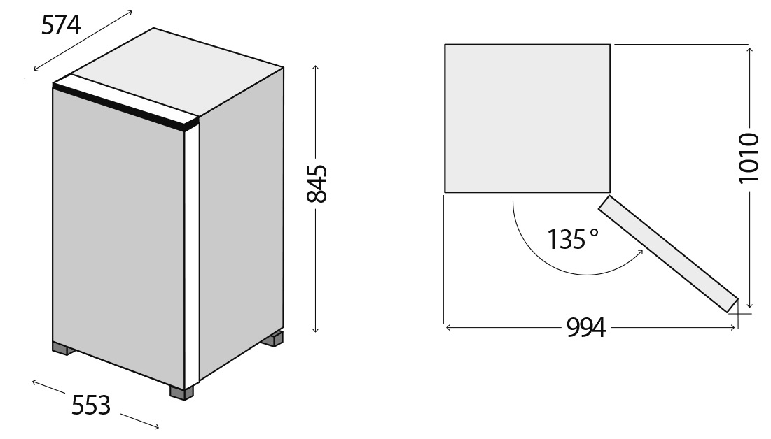 Díky kompaktním rozměrům umístíte tuto lednici téměř kamkoliv. Můžete ji zasadit i do užších prostor nebo blízko zdi, protože k plnohodnotnému přístupu k vnitřnímu obsahu stačí otevřít dveře do pravého úhlu. Velkou předností je stranově zaměnitelné otevírání dveří, která vám dává možnost uzpůsobit si ji přesně podle svých potřeb.