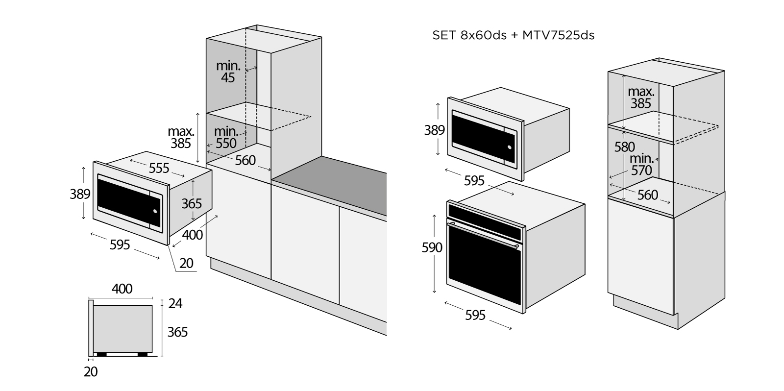 • Rozměr pro vestavbu (v x š x h): 370-385 x 560 x 550 mm