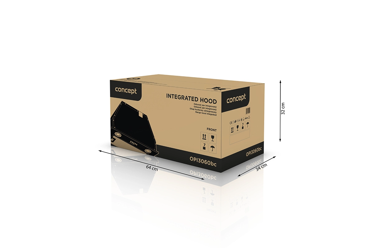 <b><p>Poškozený vnější obalový materiál. Výrobek je nový a nepoužívaný, ve 100% technickém a funkčním stavu, s plnou zárukou 24 měsíců. Na tuto položku se nevztahují slevové akce a dárky.</p> </b> Integrovaný odsavač par Concept OPI3060bc z designové linie BLACK slouží k zabudování do kuchyňské linky. Nabízí 3 stupně odtahu s maximálním výkonem 517 m3/hod.
