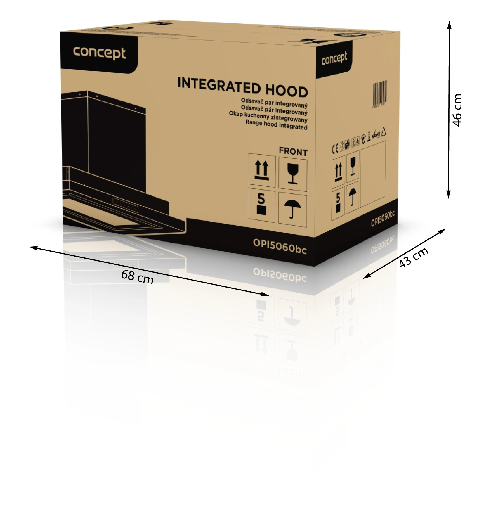 <b><p>Poškozený vnější obalový materiál. Výrobek je nový a nepoužívaný, ve 100% technickém a funkčním stavu, s plnou zárukou 24 měsíců. Na tuto položku se nevztahují slevové akce a dárky.</p> </b> Integrovaný odsavač par Concept OPI5060bc vyniká extra výkonem 581,8 m3/hod. a velmi tichým chodem s maximální hlučností pouhých 56 dB. Nabízí 3 stupně výkonu, možnost recirkulace, 3 odstíny osvětlení a režim odloženého vypnutí.
