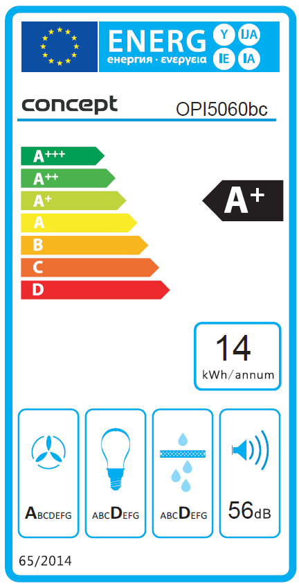 Digestoř OPI5060bc vyniká nízkou roční spotřebou energie, která činí pouhých 14 kWh. Díky tomu patří mezi úsporné spotřebiče se zařazením do energetické třídy A+. Ve srovnání s obdobnými modely spadajícími do energetické třídy B dokáže model OPI5060bc ušetřit za rok téměř 80 % energie, ve srovnání s energetickou třídou C dosahuje hranice 85% úspory.