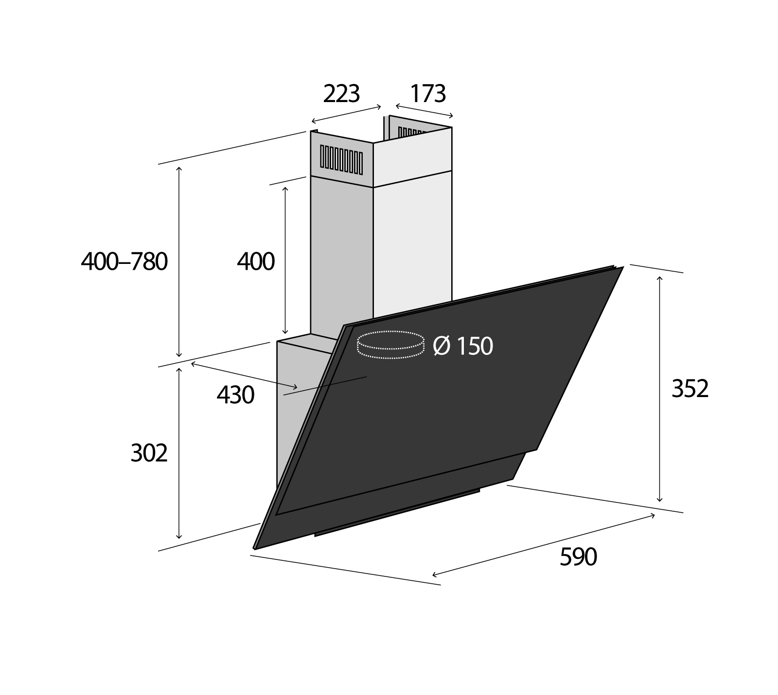 Výška digestoře je zpravidla udávaná v minimálních a maximálních hodnotách. V balení jsou k dispozici dva komíny, které do sebe zapadají, takže si výšku můžete nastavit přesně podle svých potřeb.