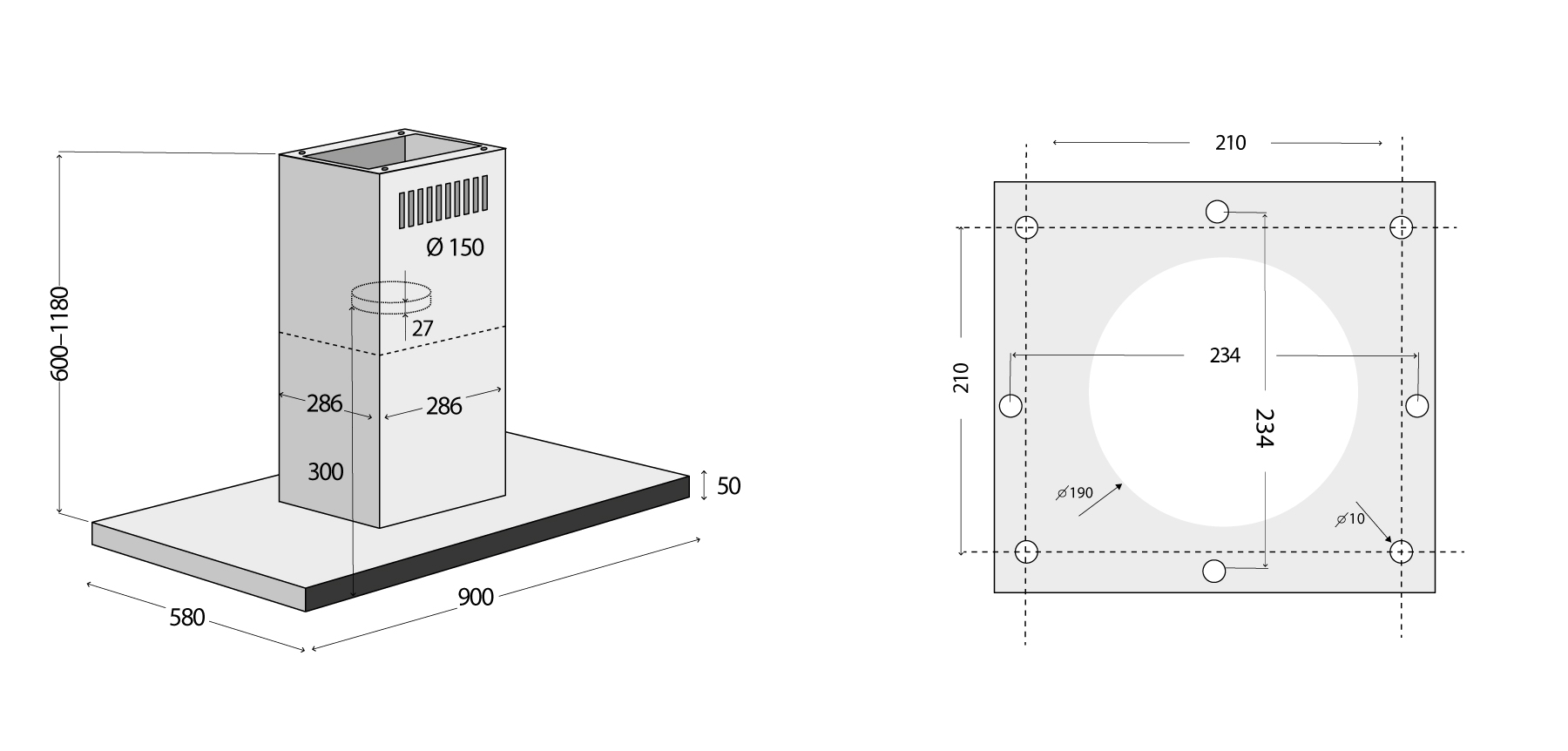 Výška odsavače je zpravidla udávaná v minimálních a maximálních hodnotách. V balení jsou k dispozici dva komíny, které do sebe zapadají, takže si výšku můžete nastavit přesně podle svých potřeb.