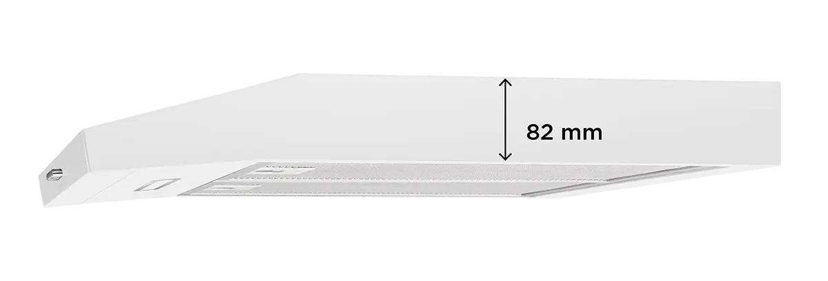 Řešíte v kuchyni každý milimetr? V tom případě máme právě pro vás jednoduché a elegantní řešení. Kompaktní rozměr odsavače s výškou 82 mm spolu s minimalistickým vzhledem perfektně podtrhne design vaší kuchyně a poskytne vám dostatek prostoru. Při každodenním vaření pak jistě oceníte metalické omyvatelné filtry a LED osvětlení umístěné v přední části digestoře, díky němuž budete mít vždy dokonalý přehled.