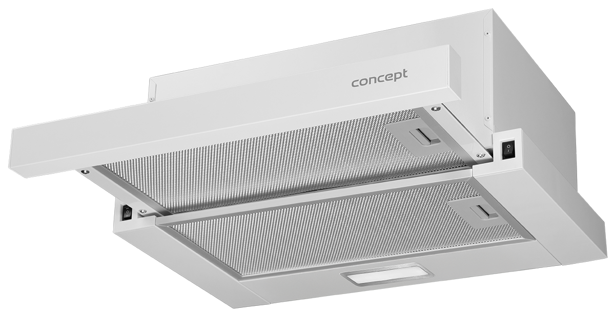 Digestoř Concept OPV3150wh s šířkou 50 cm nabízí 2 stupně odtahu a výkon 300 m3/h. Jedná se o výsuvný model, který zasadíte do horní skříňky, takže elegantně splyne s kuchyňskou linkou.