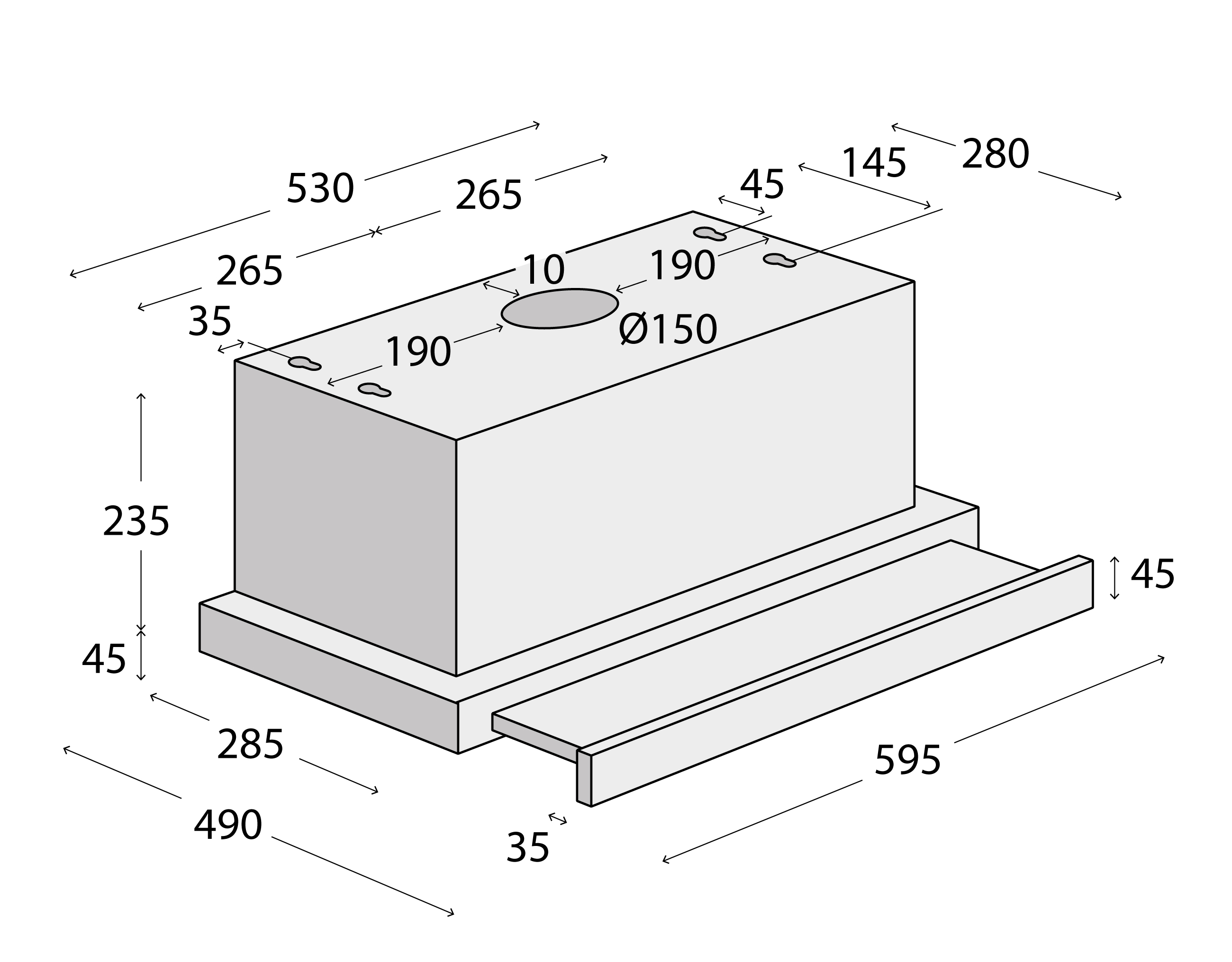 OPV3860bc Pullout hood BLACK