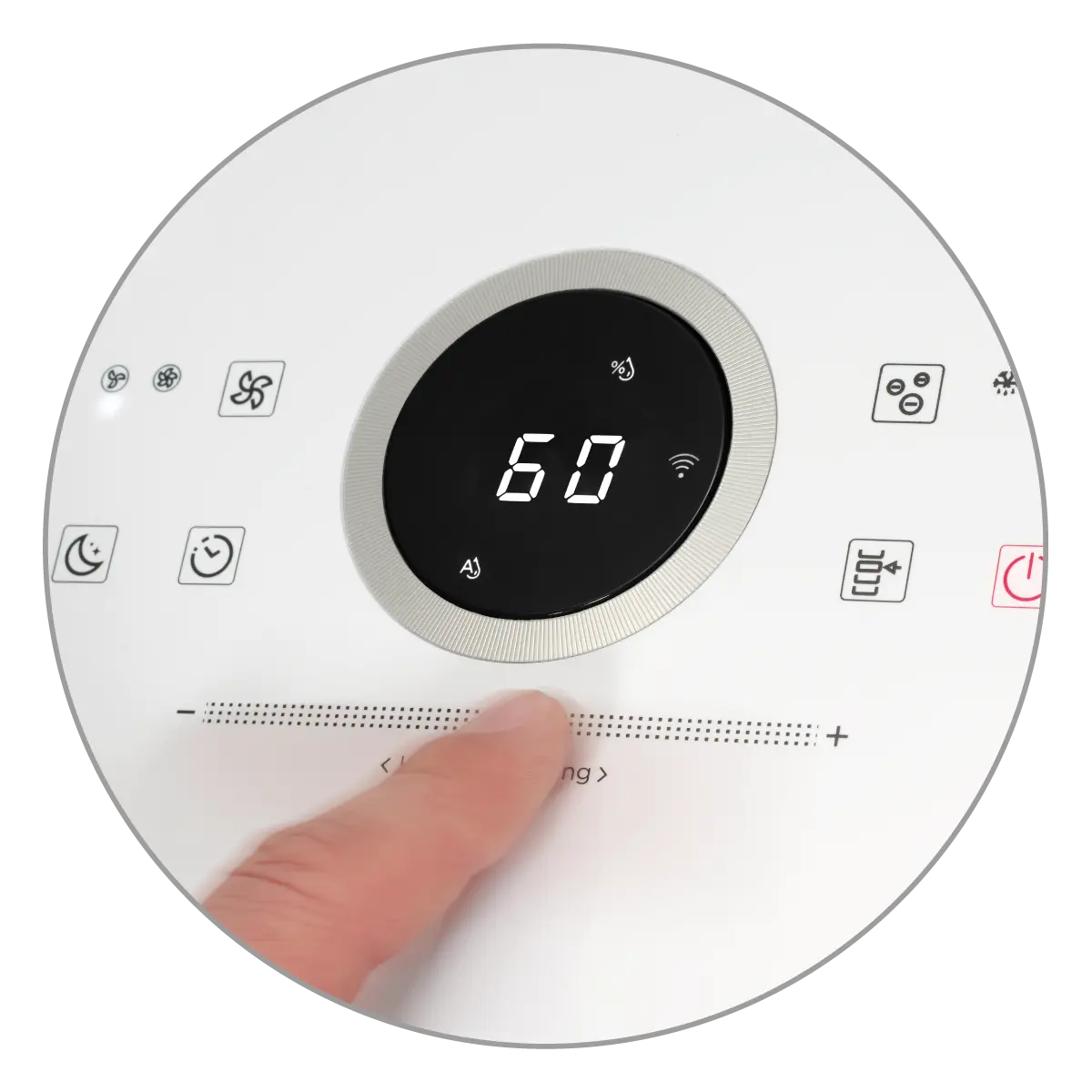 Odvlhčovač nabízí jednoduché a intuitivní dotykové ovládání se sliderem pro plynulé nastavení vlhkosti. Vybírat můžete ze 4 provozních režimů: