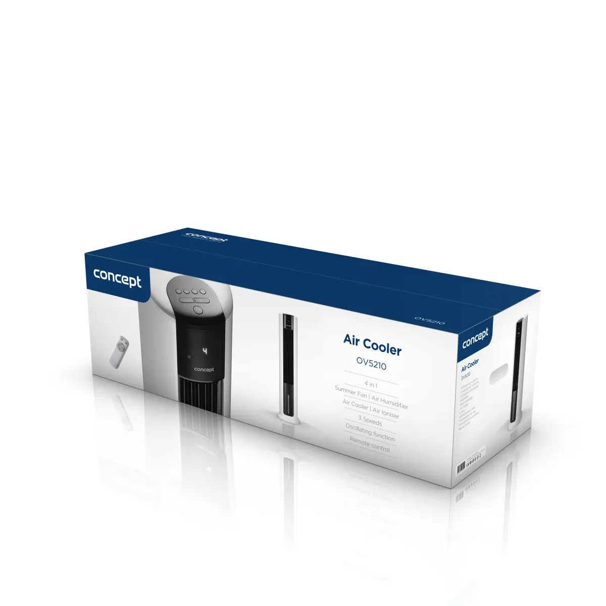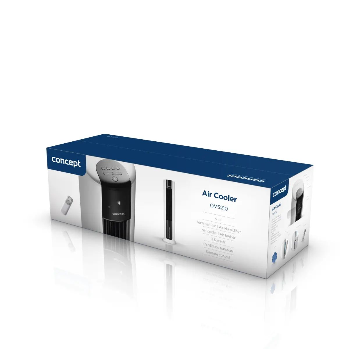 <b><p>Poškozený vnější obalový materiál. Výrobek je nový a nepoužívaný, ve 100% technickém a funkčním stavu s plnou zárukou 24 měsíců. Na tuto položku se nevztahují slevové akce a dárky.</p> </b> Ochlazovač vzduchu 3 v 1 Concept v sobě skrývá hned 3 praktické pomocníky: ochlazovač, ventilátor a zvlhčovač. Ovládat ho můžete pomocí dálkového ovladače a nabízí 3 režimy proudění vzduchu, časovač a funkci oscilace.