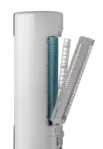 Ochlazovač je vybaven stabilní kruhovou základnou, která zajišťuje maximální bezpečnost během provozu a zabraňuje nechtěnému převrhnutí. Díky pojezdovým kolečkům ho snadno přemístíte z místnosti do místnosti. Nechybí ani praktický držák, na který navinete přívodní kabel, aby vám nepřekážel během manipulace.
