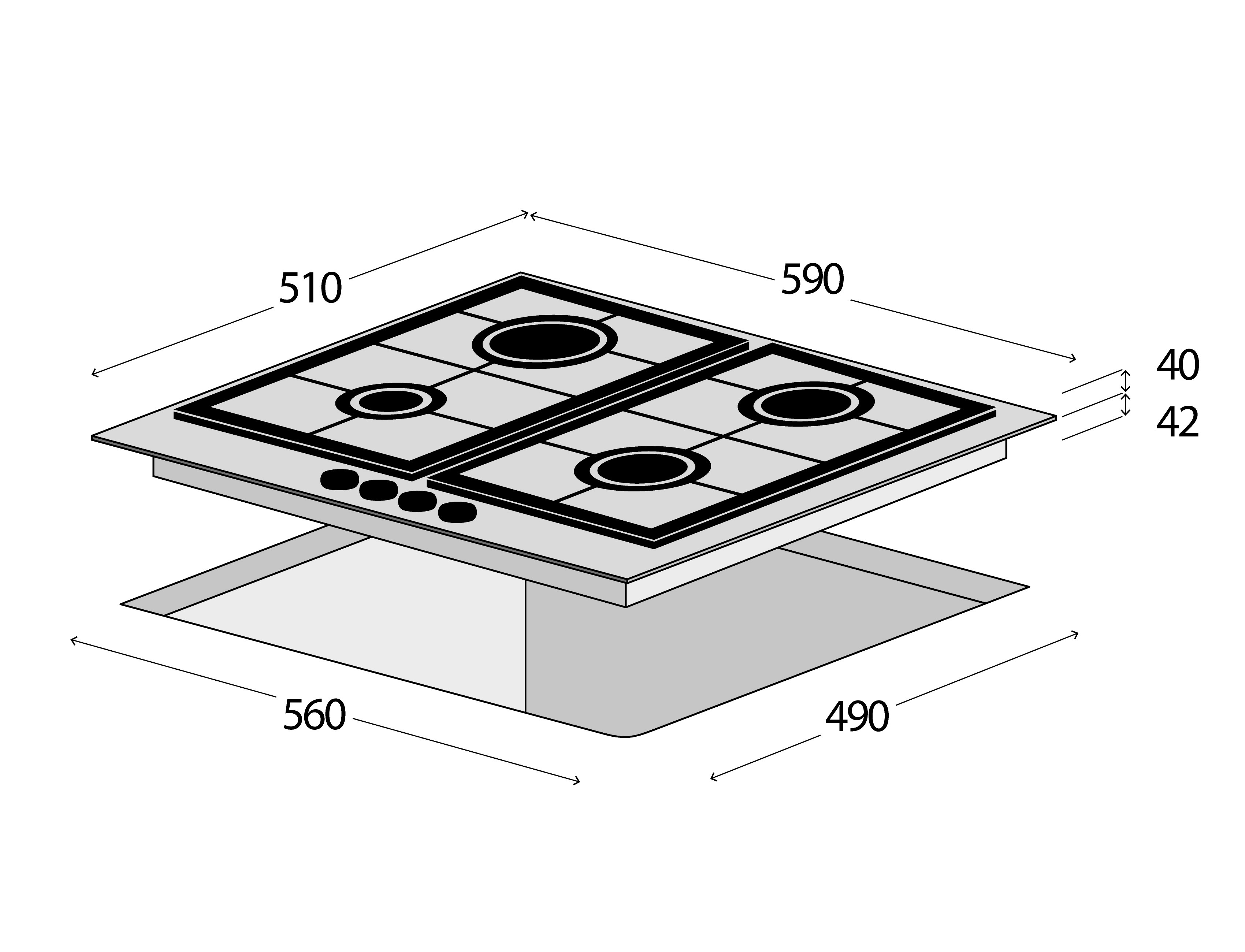 • Rozměry pro vestavbu (vxšxh): 45 x 560 x 490 mm