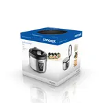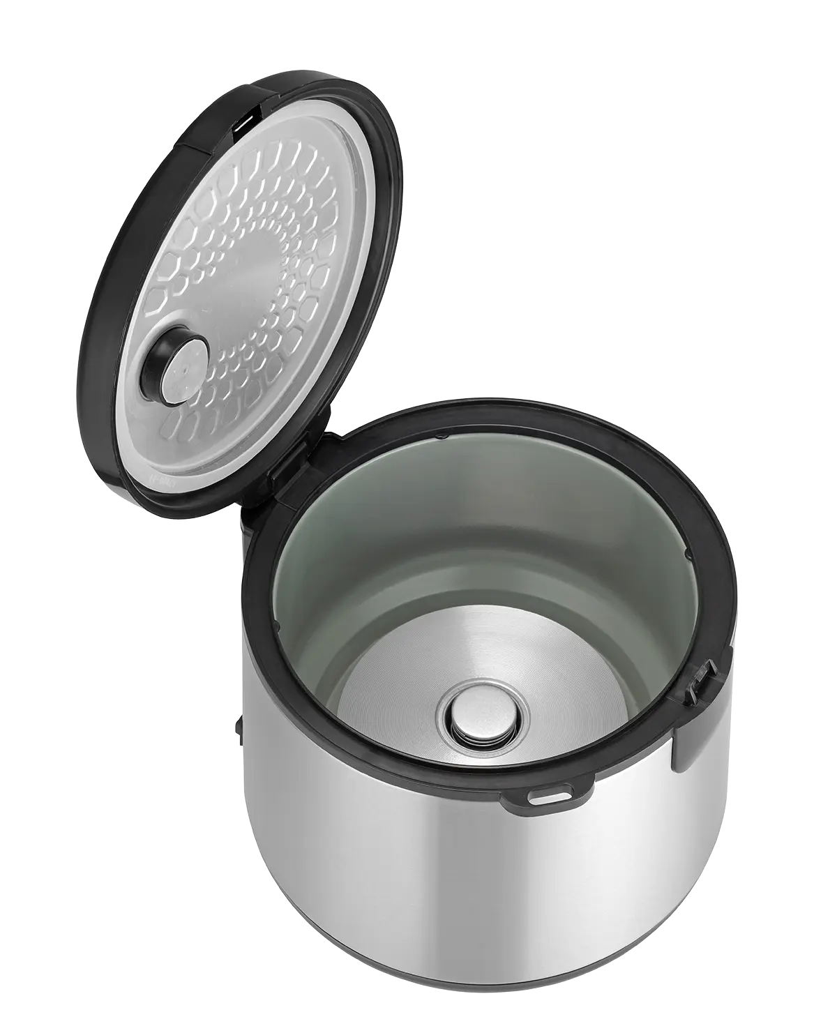 Rýžovar disponuje nádobou o objemu 1,5 l, takže pohodlně nakrmíte i velkou rodinu. Součástí základní výbavy rýžovaru je praktická odměrka, díky které dosáhnete správného dávkování. Obecně platí, že na 1 odměrku rýže připadá 1 odměrka vody. Do rýžovaru můžete přidat vybrané koření a bylinky pro získání lepší chutě a vůně.