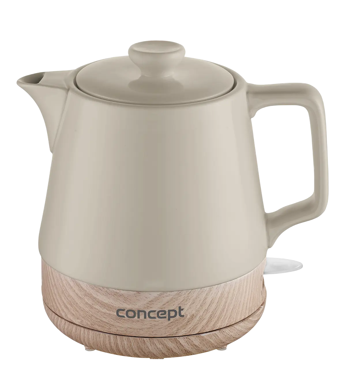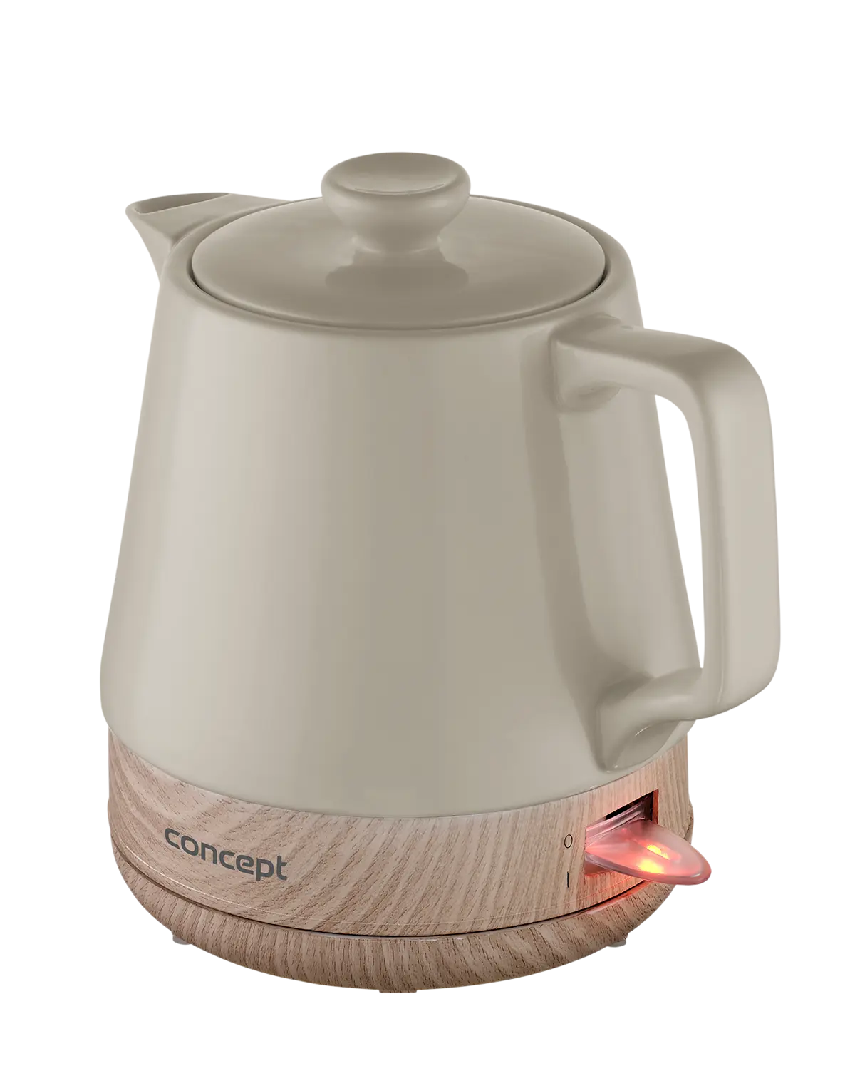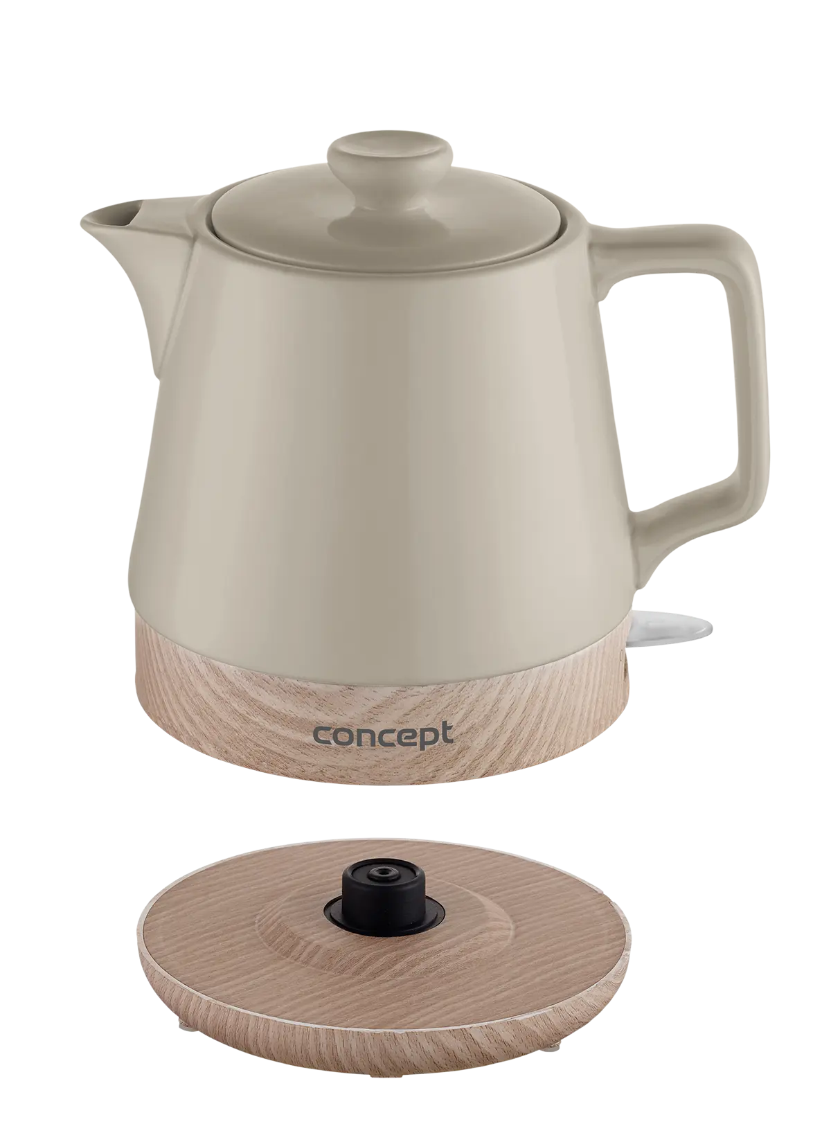 Rychlovarná konvice RK0061 zaujme na první pohled svým jedinečným designem, který stylově kombinuje keramiku a dřevo. Výhodou je, že ji můžete využívat také jako klasickou konvičku a servírovat v ní oblíbený nápoj přímo na stůl. Disponuje objemem 1 l, takže je vhodná do domácností s menším počtem členů.