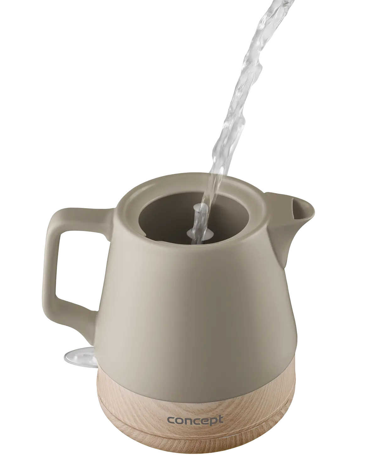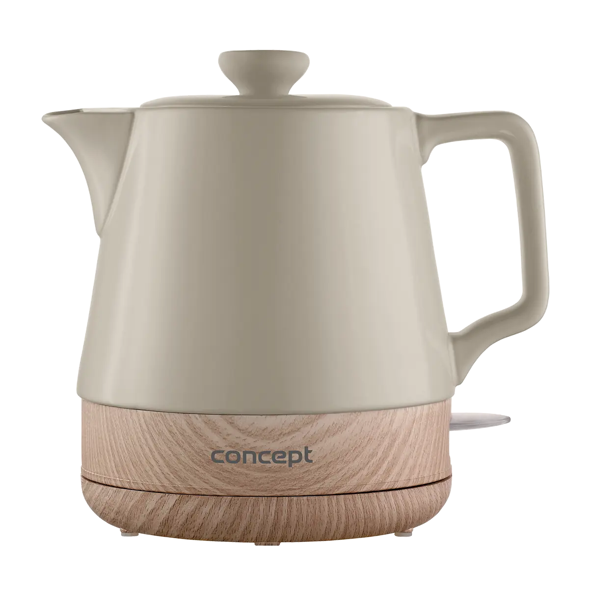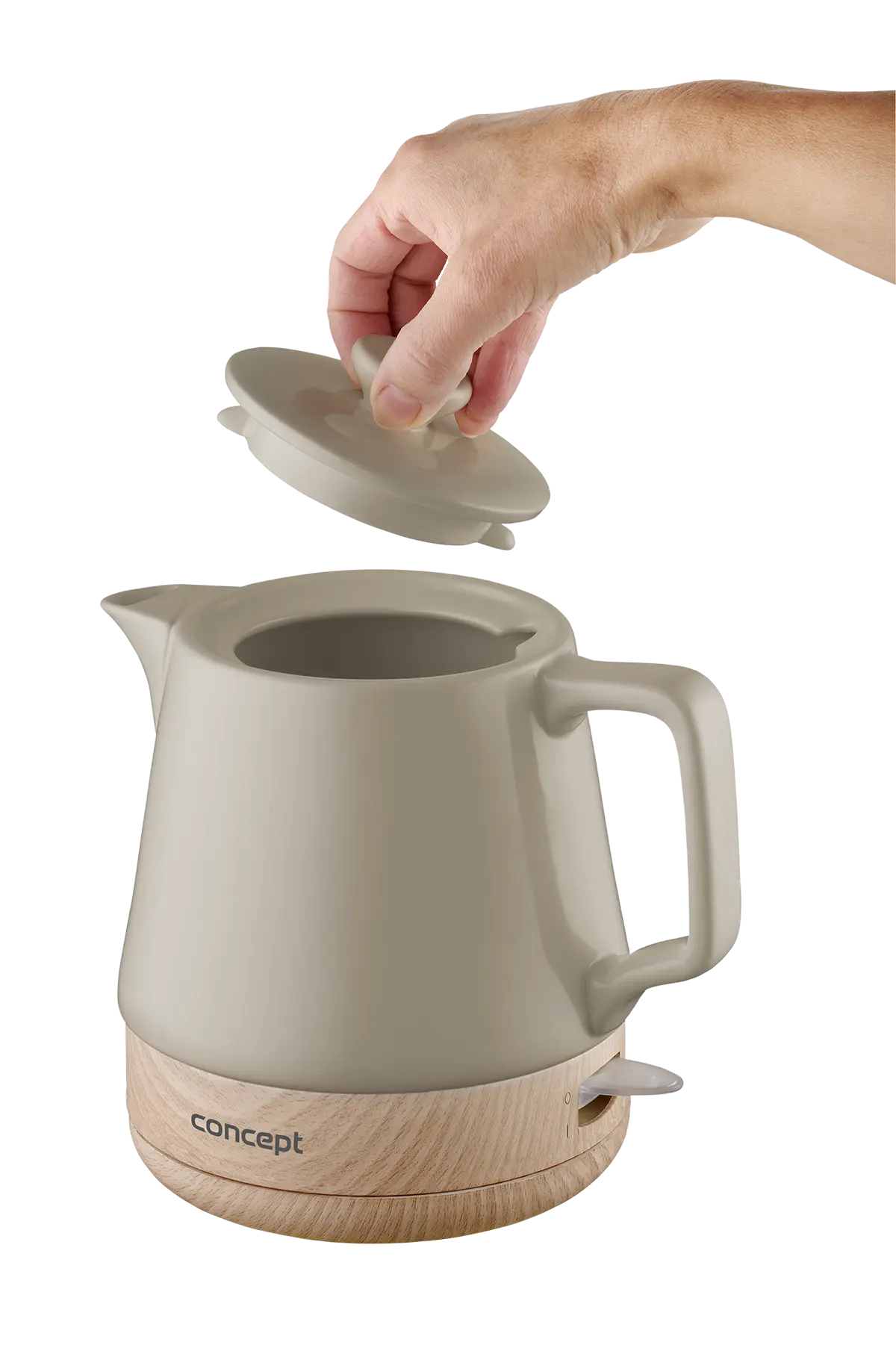 Keramické rychlovarné konvice nabízíme ve třech barevných variantách. Dřevěný design můžete zkombinovat s keramikou v barvě bílé (RK0060), kávové (RK0061) nebo antracitové (RK0062).
