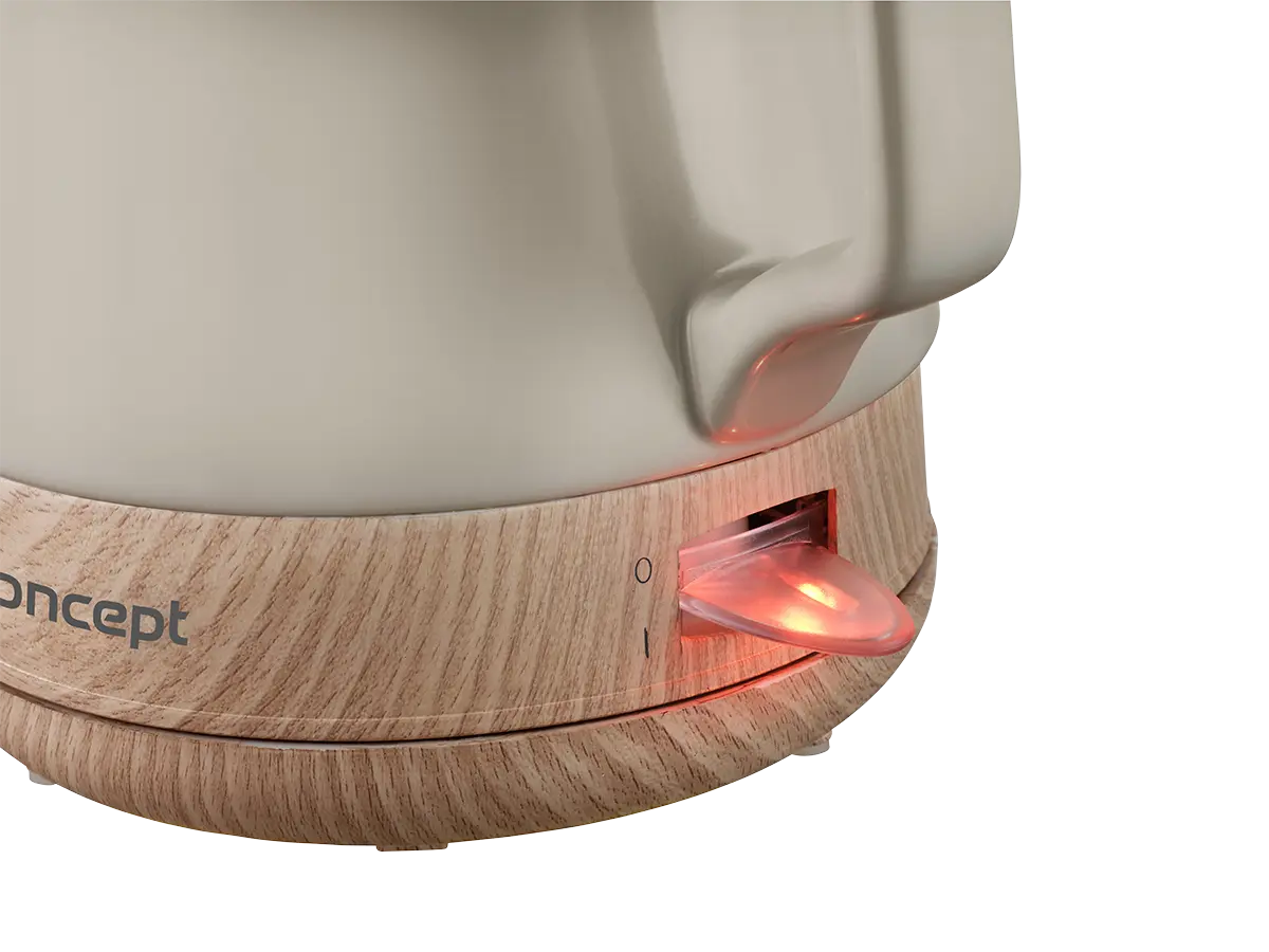 Keramická konvice je vybavena dvojnásobným bezpečnostním systémem. Ten vám zaručí, že se konvice automaticky vypne po dosažení bodu varu a také pokud ji omylem zapnete prázdnou, takže nedochází k jejímu poškození. Hlavní spínač slouží současně jako kontrolka provozu, která se rozsvítí vždy, když je konvice zapnutá. Nechybí ani protiskluzové nožičky pro zajištění větší stability.