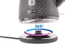 Široké tělo konvice, skryté topné těleso a vyjímatelné sítko proti vodnímu kameni umožňují snadné čištění. Výhodou je otočný podstavec o 360 st., takže nemusíte řešit, z jakého úhlu konvici na podstavec umístíte.