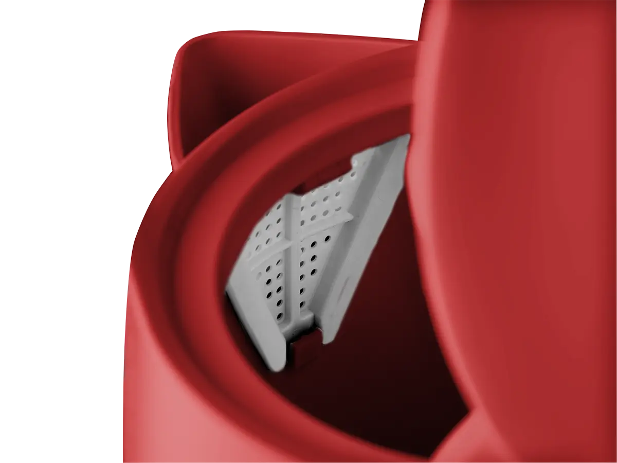Konvice je opatřena tlačítkem pro snadné otevření víka a velkým plnicím otvorem pro pohodlné plnění vodou. Hladké dno se skrytým topným tělesem zamezuje usazování nečistot. Filtr proti vodním usazeninám je vyjímatelný, takže ho můžete kdykoliv dle potřeby vyčistit. Praktický je i plně otočný podstavec s prostorem pro uschování přebytečného kabelu, na který můžete konvici postavit z jakéhokoliv úhlu.