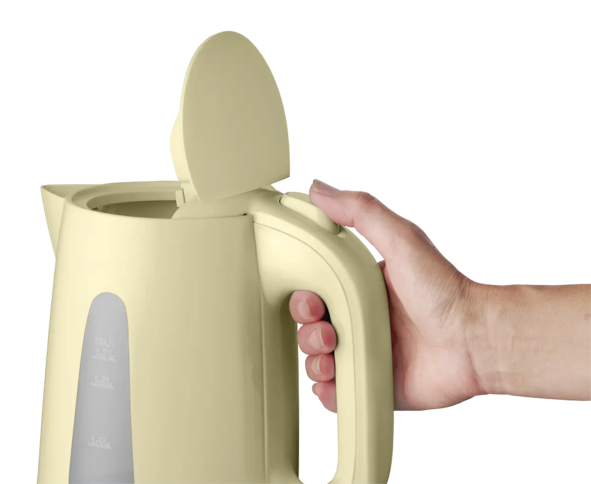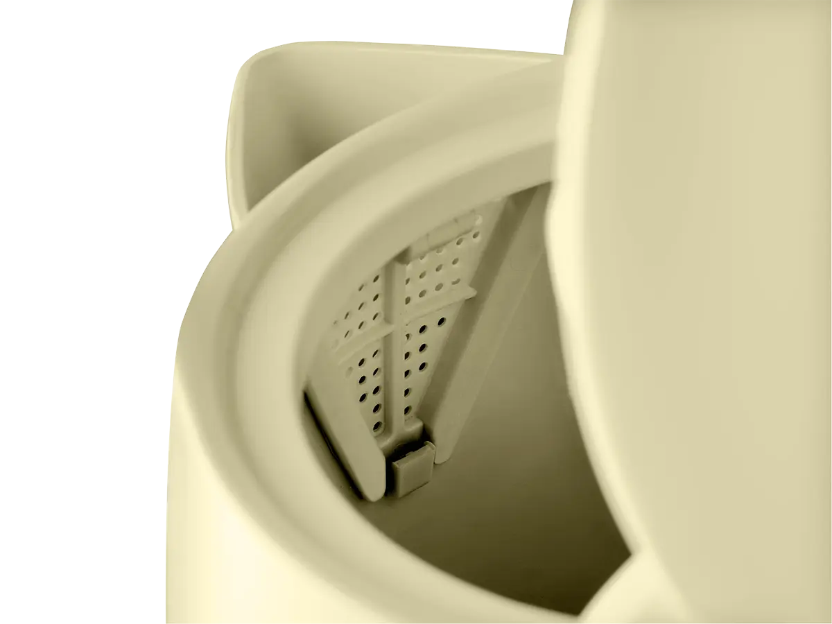 Konvice je opatřena tlačítkem pro snadné otevření víka a velkým plnicím otvorem pro pohodlné plnění vodou. Hladké dno se skrytým topným tělesem zamezuje usazování nečistot. Filtr proti vodním usazeninám je vyjímatelný, takže ho můžete kdykoliv dle potřeby vyčistit. Praktický je i plně otočný podstavec s prostorem pro uschování přebytečného kabelu, na který můžete konvici postavit z jakéhokoliv úhlu.