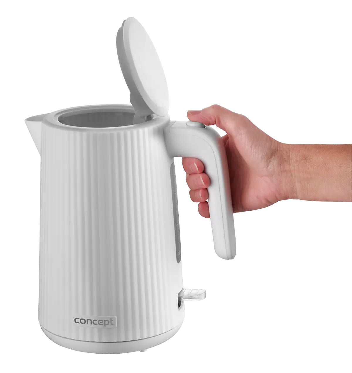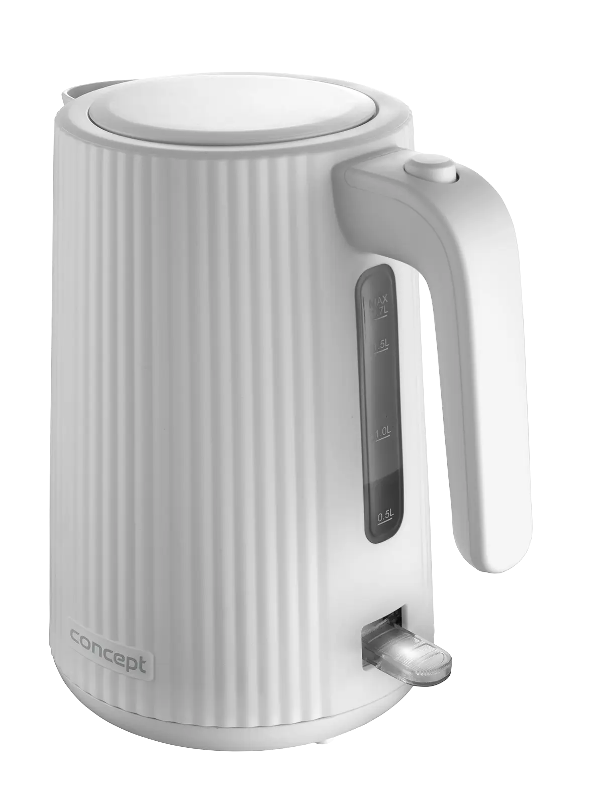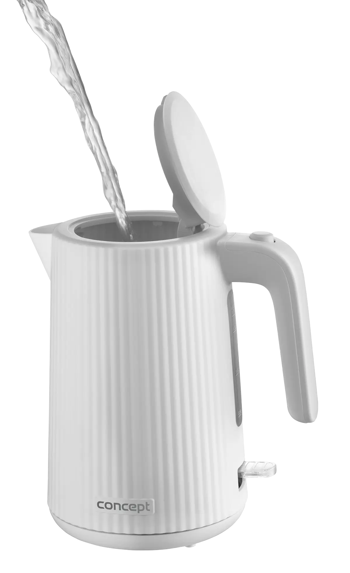 <b><p>Poškozený vnější obalový materiál. Výrobek je nový a nepoužívaný, ve 100% technickém a funkčním stavu s plnou zárukou 24 měsíců. Na tuto položku se nevztahují slevové akce a dárky.</p> </b> Rychlovarná konvice Concept RK2390 s objemem 1,7 l je vybavena trojnásobnou bezpečnostní pojistkou a značkovým konektorem Strix. Na první pohled zaujme atraktivním vroubkovaným designem v bílé barvě.