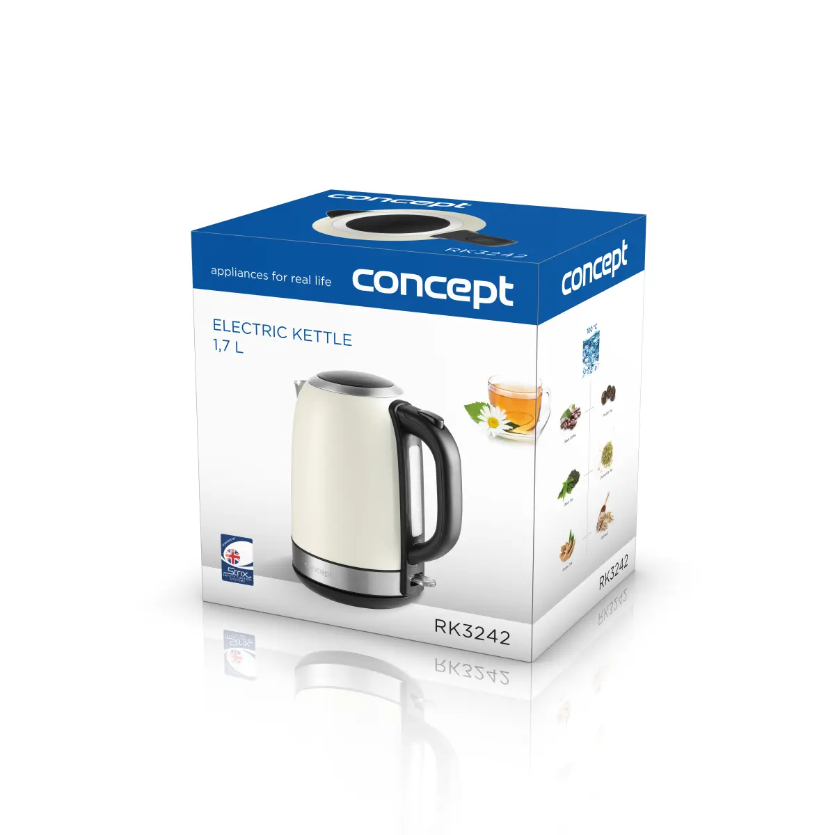 Konvice RK3242 je osazena středovým konektorem britské značky STRIX, který je zárukou vysoké kvality a prodlužuje životnost spotřebiče.