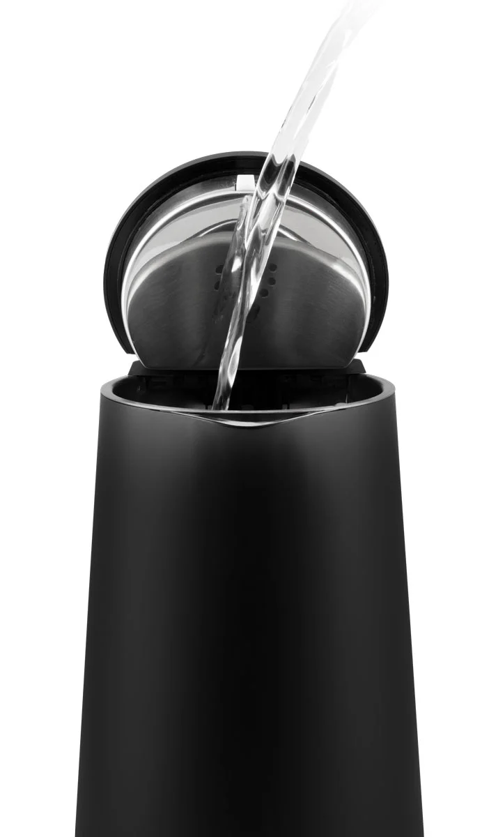 Konvice je opatřena velkým plnicím otvorem pro pohodlné plnění vodou. Hladké dno se skrytým topným tělesem zamezuje usazování nečistot. Velký vodoznak uvnitř varné nádoby nabízí přehled o množství vody. Praktický je i plně otočný podstavec s prostorem pro uschování přebytečného kabelu, na který můžete konvici postavit z jakéhokoliv úhlu.