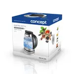 <b><p>Zánovní produkt je minimálně či jen krátkodobě používaný. Výrobek je v pořádku, může jevit známky použití. Na zboží se vztahuje plná záruka 24 měsíců. Na tuto položku se nevztahují slevové akce a dárky. </p> </b> Skleněná rychlovarná konvice s regulací teploty Concept RK4130 o objemu 1,7 l nabízí kvalitní zpracování a moderní design s modrým podsvícením během provozu.
