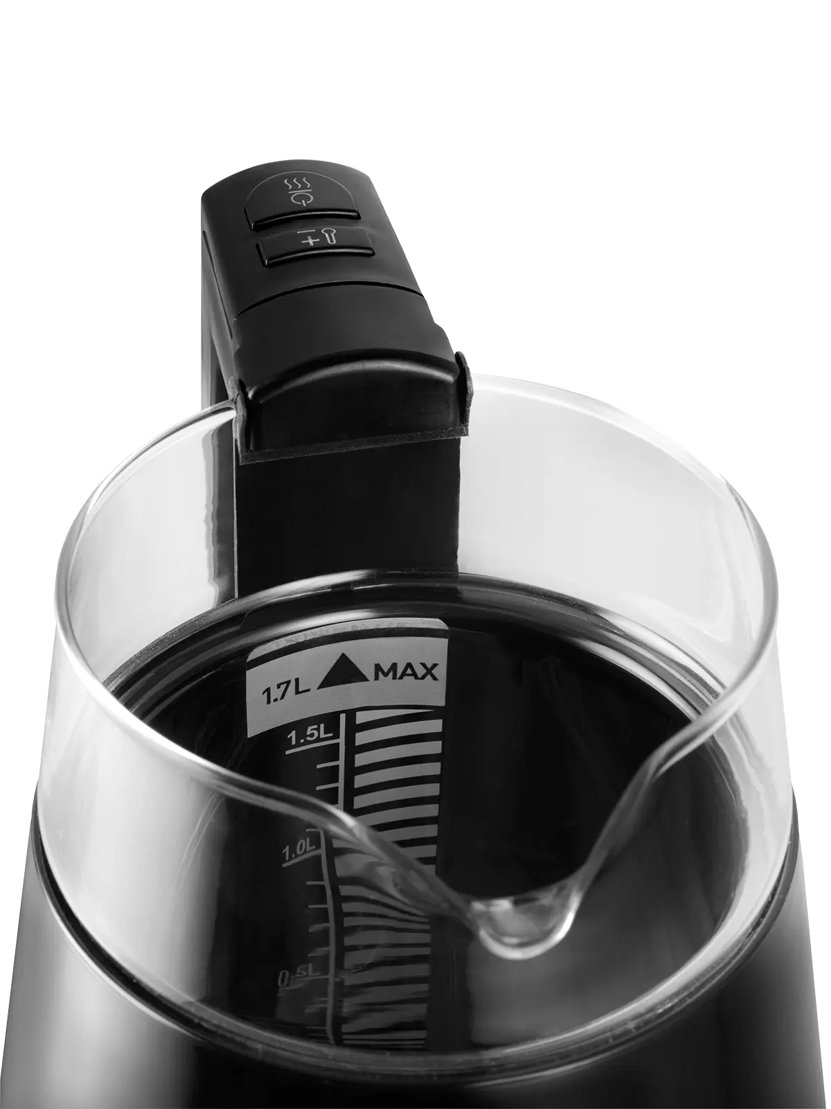Konvice je opatřena odnímatelným víkem s integrovaným filtrem proti usazeninám a velkým plnicím otvorem pro pohodlné plnění vodou. Hladké dno se skrytým topným tělesem zamezuje usazování nečistot. Velký vodoznak uvnitř varné nádoby nabízí přehled o množství vody. Praktický je i plně otočný podstavec s prostorem pro uschování přebytečného kabelu, na který můžete konvici postavit z jakéhokoliv úhlu.