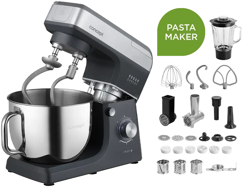 DOUGH EXPERT není jen obyčejný kuchyňský robot - je to specialista na kynutá těsta. Oproti běžným modelům disponuje dvojitým hnětacím hákem a praktickou funkcí přihřívání nádoby, díky čemuž těsto dokonale zpracuje a nechá ideálně vykynout. Samozřejmě zvládne i další kuchařské úkoly – šlehání, míchání či mixování. Díky bohatému příslušenství snadno umele maso, naplní párky, připraví domácí těstoviny i cukroví. V kompaktním designu ukrývá funkce několika spotřebičů, takže šetří místo na lince i váš čas. Jeden robot, nekonečné možnosti – perfektní volba pro každou moderní kuchyň.