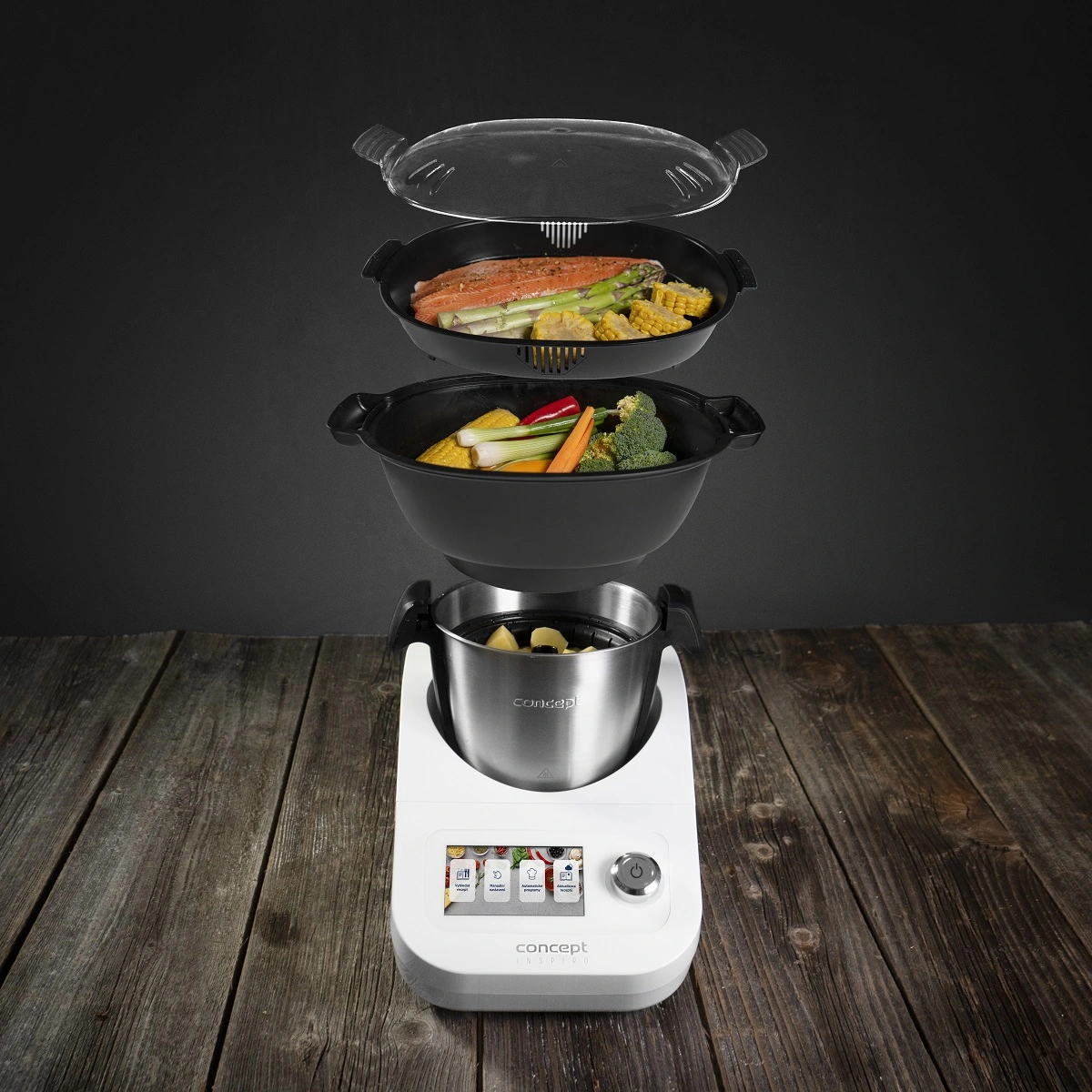 Objevte nový rozměr vaření s multifunkčním varným robotem INSPIRO Concept RM9000. Zastane práci hned několika spotřebičů, takže vám v kuchyni ušetří spousty drahocenného místa. Využít ho můžete jako kuchyňský robot, parní hrnec, rýžovar, food procesor, sekáček, mixér, běžný hrnec nebo váhu. Nabízí bohatý výběr z databáze chutných receptů. Jednoduchými kroky vás provede celým procesem přípravy, takže si hravě poradíte i se složitějšími recepty, na které jste si dříve netroufli. Multifunkční kuchyňský robot INSPIRO pomůže splnit vaše kulinářské ambice, i když jste v kuchyni úplný začátečník. Navštivte microsite věnovanou multifunkčnímu robotu INSPIRO.