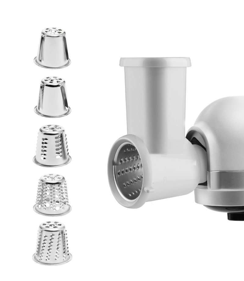 Struhadlo s 5 vyměnitelnými nástavci Concept RMP0030 je plně kompatibilní s kuchyňským planetárním robotem Concept RM8000, RM8010, RM7000, RM7010, RM7020, RM7030, RM7500 a RM7510.