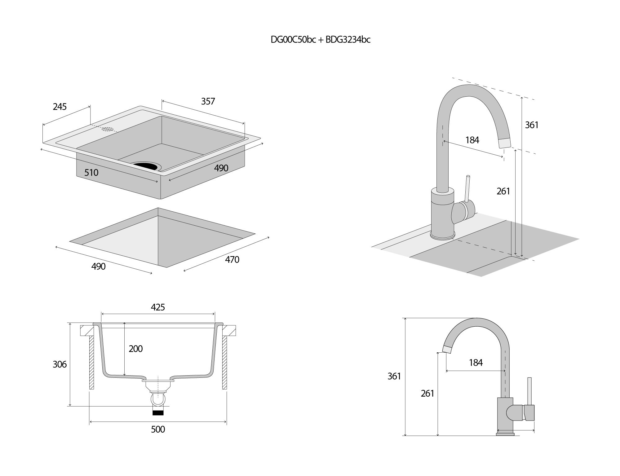 Dřezová baterie Concept BDG3234bc je osazena keramickou kartuší, ve které se mísí teplá a studená voda. Výhodou této kartuše je, že se minimálně opotřebovává, a proto vyniká delší životností než levné plastové typy. Dřez DG00C50bc je vyroben z granitu, tedy kvalitního a velmi pevného materiálu, který obsahuje 80 % drcené žulové a křemičité směsi a 20 % pryskyřicového pojiva s barvivem. Tento set vyniká moderním, atraktivním vzhledem, snadno se udržují a hodí se do jakéhokoliv interiéru.