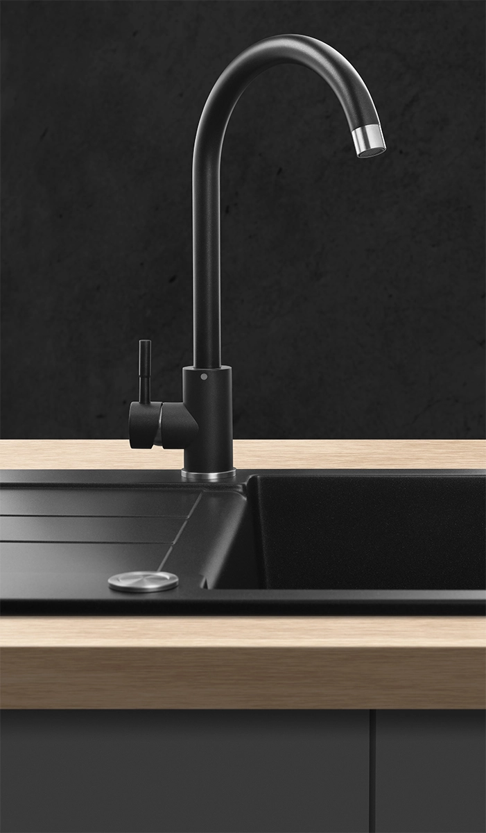 Velkou předností dřezu i baterie je jednoduchá montáž a pohodlná obsluha. Chytrá řešení v podobě ovládání výpusti pomocí push-in tlačítka a plně otočné baterie zvyšují komfort během užívání.