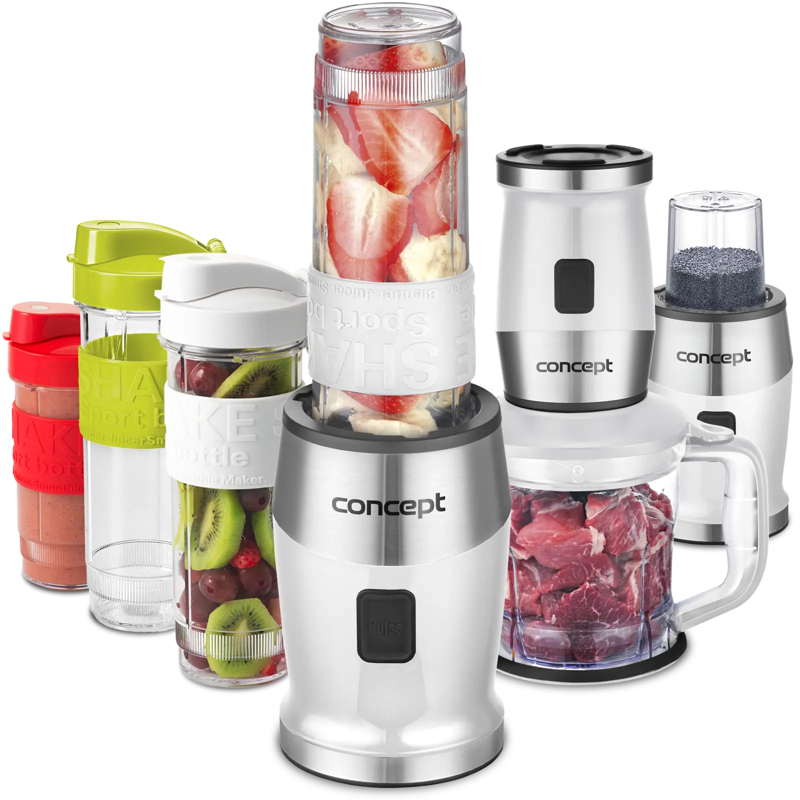 Smoothie maker ACTIVE SMOOTHIE Concept SM3385 s příkonem 500 W umixuje díky své síle jemné a sametové smoothie. V základní výbavě najdete černou a bílou láhev o objemu 570 ml a menší, 400 ml. Smoothie maker i láhve můžete vybírat z 6 barevných variant.