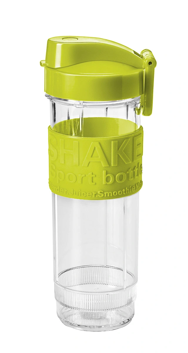 Zelená nádoba s víkem SB3386 o objemu 570 ml doplňuje smoothie mixér SM338x, na který se jedním otočení umístí. Lahev je vybavena poutkem a protiskluzovým gripem pro větší komfort při manipulaci.